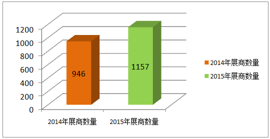參展商數量:1157家參展企業(yè),與2014年的946家展商相比,增長22%;